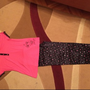 Штаны: ширина пояса - 42 см.(резинка сзади), ПОБ - 56 см., длина по боковому шву - 102 см. Футболка: ПОГ - 47 см., длина - 66 см.