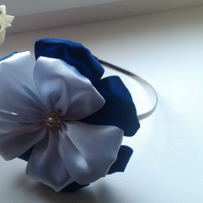 Металлический узкий обруч с крупным бело-синим цветком.