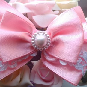 Розовый банк на резинке с ажурными вставками.