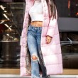 стильное пальто ткань стеганная плащевка канада на силиконе 200 размер Over Size цвет тиффани и розовый длина 130 см -