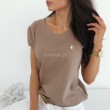 Модель 1201 Футболочка Ткань: Турецкая Вискоза (а4660) Отменное качество! Цвета: беж, мокко, пудра Значок Шанель в комплекте! Размеры: 42--46 универсал -