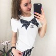 Футболка AW-4051 Цена: 315 грн. Размер: 42-46 Футболка с бантиком Фабричный китай Ткань: коттон Цвет: чёрный, белый -